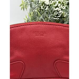 Perlina NY Red Pebbled Leather Small Crossbody Bag Gold Chain Monogram Lining