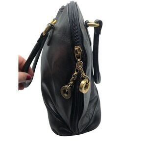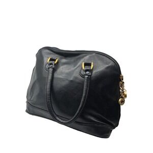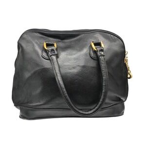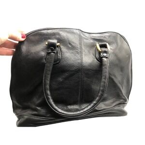 Perlina New York Black Leather Office Multi Pocket Tote Shoulder Bag Satchel