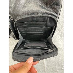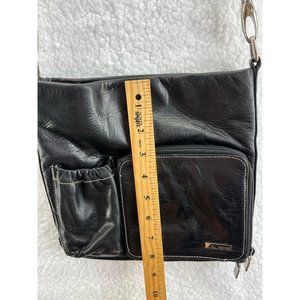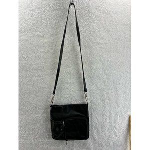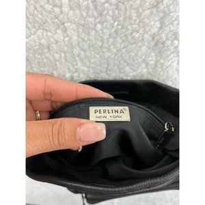 Perlina New York Womens Crossbody Bag Black Pockets Detachable Strap Zipper S