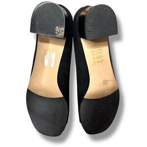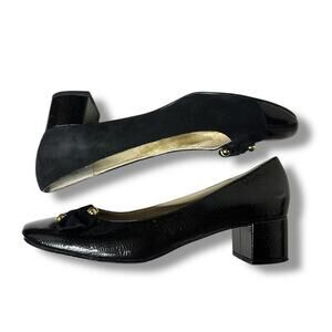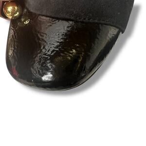 Black suede and pebbled patten leather upper