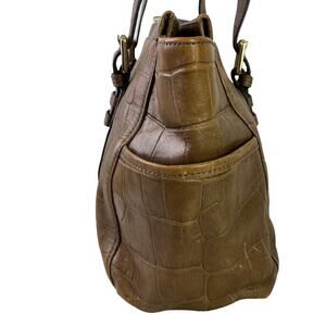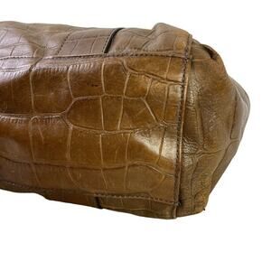 Perlina Womens Brown Croc Embossed Leather Double Handle Shoulder Bag Purse