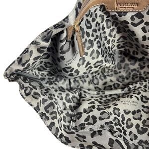 Perlina Women's Brown Croc Embossed Leather Double Handle Shoulder Bag Purse is a large, rectangular shoulder bag with a brown leather double handle. The bag features a zip and magnetic closure, with a gray fabric lining and gold hardware accents. The exterior is made of croc-embossed leather with an animal print pattern and zipper accents. This bag is perfect for casual, workwear, or business occasions.