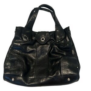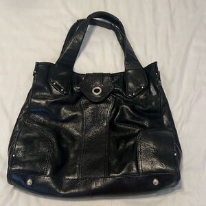 Perlina large black leather handbag 3 inside 1 outside zip pockets EUC