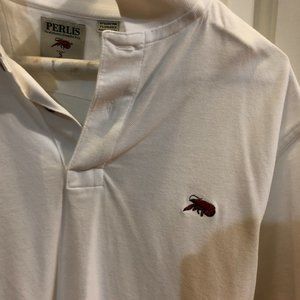 White Polo shirt from Perlis New Orleans with red crawfish logo size small in excellent condition