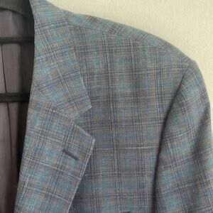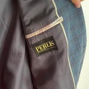 Perlis New Orleans linen blend two button single vent window pane sport coat sz 44R