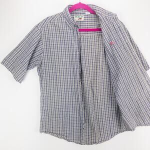 Perlis Seersucker Shirt Men's Medium Short Sleeve Button Down Blue Green Stripes