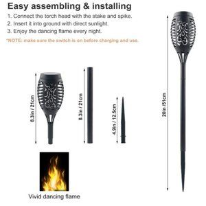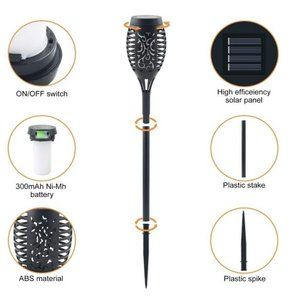 WIDELY USED: The outdoor solar flame light torch is perfect for home, garden, yard, pathway, walkway, landscape decorations and garden parties, camping, barbecues, weddings, Christmas, Halloween and other festivals to provide the perfect campfire atmosphere.
