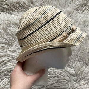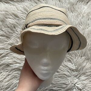 Permanent Vacation Cream Striped Paper Woven Small Brim Hat One Size