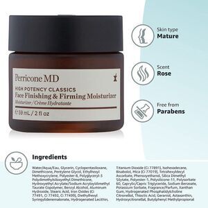 Give your face the nutrients it needs backed by science with Perricone MD Face Finishing & Firming Moisturizer. Loaded with powerful antioxidants and nourishing factors fine lines and wrinkles are minimized for an amazingly youthful appearance. The rich texture provides deep hydration for visible radiance and smoother skin. With vitamin E DMAE and kukui nut seed oil everyday dryness is banished to reveal your most supple skin of all. Benefits: Infuses skin with essential hydration Minimizes appearance of lines and wrinkles Nourishes and smooths Creates instantly dewy