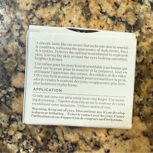 A smooth, balm-like eye cream that melts into skin to nourish and condition, instantly softening the appearance of dark circles, lines and wrinkles. Delivers the optimal nourishment