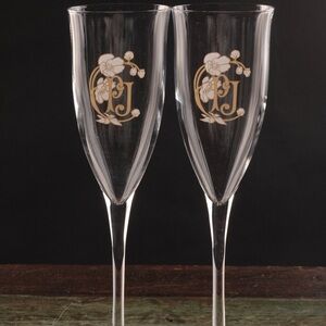 Perrier Jouet Champagne Wine Glass Flute Belle Époque PJ Logo France Set of 2