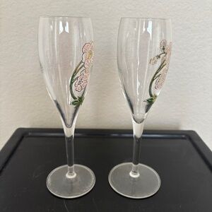Perrier-Jouet Champagne Flutes Clear Glass Pink White Flowers Lot Bundle of 2