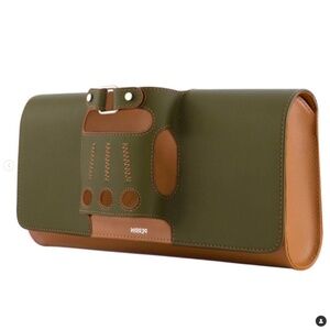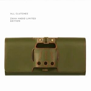 Perrin Paris Le Cabriolet Glove Clutch . The jungle green orange trim calfskin leather clutch is lined with lambskin and has one interior flat pocket. Clutch is new with dust bag but no tags. It will go through Posh luxury inspection and authentication. Video will be uploaded shortly.