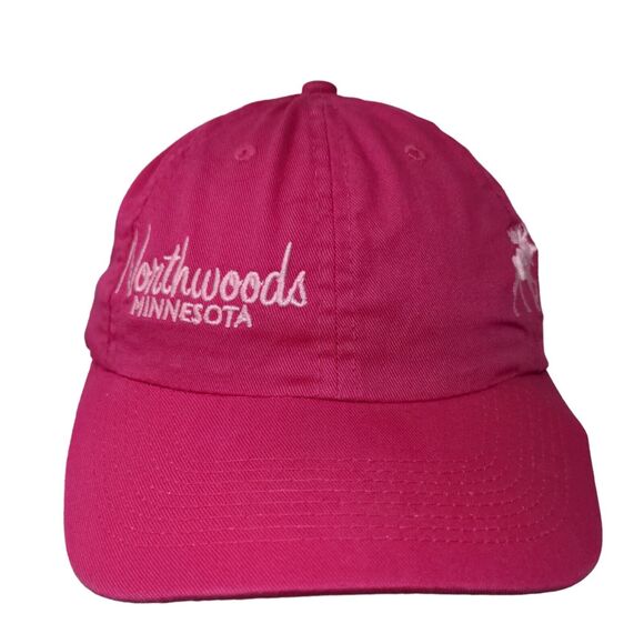 Perrin Women's Strapback Hat Pink Embroidered Northwoods Minnesota Logo Cotton