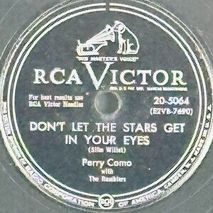 Discover a vintage treasure with Perry Como's RCA Victor release, featuring "Don't Let The Stars Get In Your Eyes" and "Lies." This 78 RPM gem showcases his timeless charm alongside The Ramblers’ accompaniment, bursting with mid-century musical brilliance. An exquisite addition for collectors and fans alike.