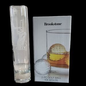 Perry Coyle Tall Shot Glass Signed AND Brookstone Golf Shaped Ice Mold Bundle