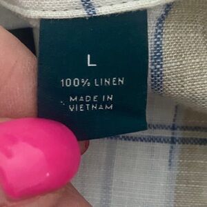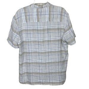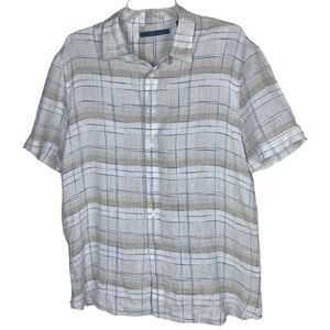 Perry Ellis 100% linen plaid short sleeve shirt size large