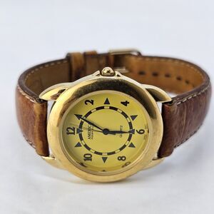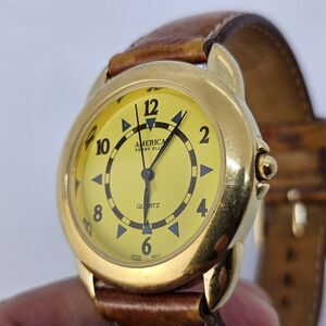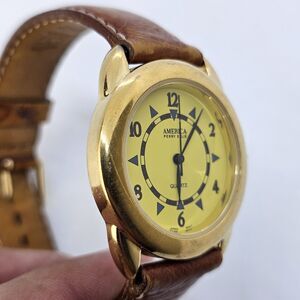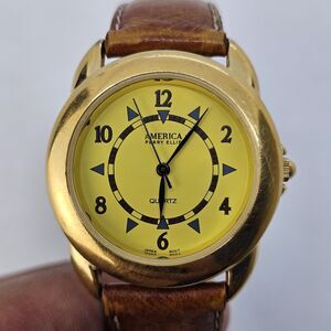 Perry Ellis 34MM Women's Watch Yellow Dial Brown Leather Bands New Battery