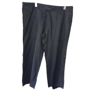 Perry Ellis 42x30 Linen Roll Tab Hem Casual Coastal Vacation Pants Black Pockets