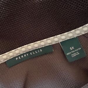 Listing is for a grey knit Perry Ellis size 5X short sleeve half zip polo shirt! Small snags in a few places, see photo for reference (does not picture all, just showing size of snags, pretty small). Shirt is darker grey, can’t get the lighting right on this one, more like shade in product tag pic.