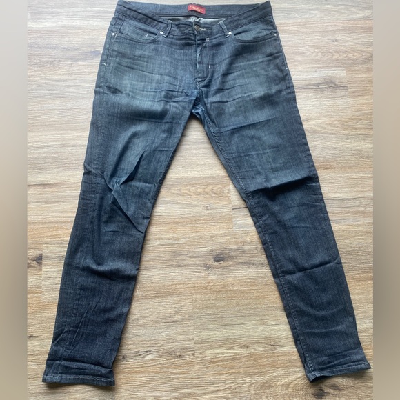 I have for sale a pair of Perry Ellis jeans. These are 34x32. Their fit is slim/skinny. Their color is blue & grey.