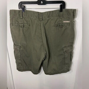 Perry Ellis, America, 38, olive cargo, button zip closure, Bermuda shorts.