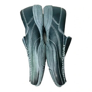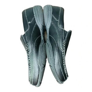 Perry Ellis America Black Leather Loafers, slip-on shoes, apron toe, men's size 8.5.