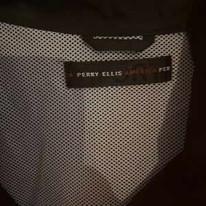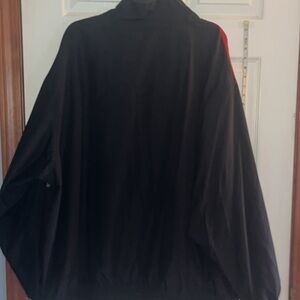 Perry Ellis America, windbreaker jacket, zip up, size 3 XL. Red, white, black. Lightweight, two hand pockets, one pocket in the inside, 100% polyester.