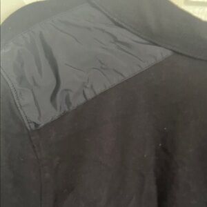 Stylish black tee with a comfortable fit. Made from a soft cotton blend. Detail on the shoulder. Size large. Quarter zip. Could be good for casual or business, golfing, or just a day out.