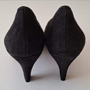 Perry Ellis Black Suede Leather Upper Almond Toe Pump Heel Shoes - Size 8.5AA