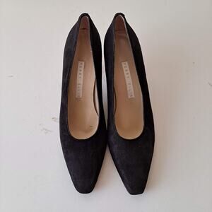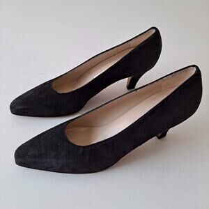 Perry Ellis Black Suede Leather Shoes Upper Almond Toe Pump Heel - Size 8.5AA