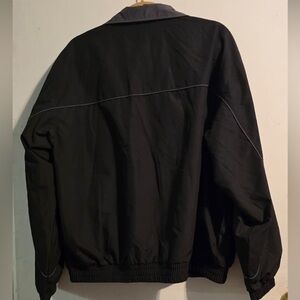 Classic black windbreaker with gray collar. Lightweight and versatile. Ideal for casual outings.