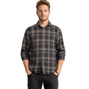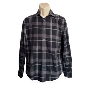 Perry Ellis Black and Gray Paid Button Down Shirt Size S
