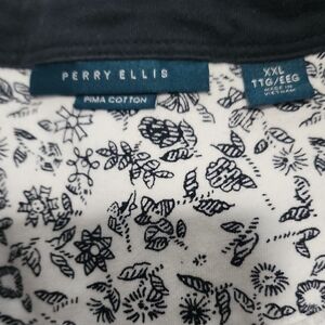 Perry Ellis Black and White Polo Shirt with Intricate Design