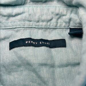 Experience effortless style with this Perry Ellis blue casual button down shirt. Crafted for comfort, it's perfect for laid-back outings or a relaxed office vibe. The classic design ensures a timeless appeal.
