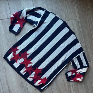 Show off your patriotic style with this Perry Ellis blue and white striped knit sweater featuring bold red stars. Soft knit fabric with a relaxed fit that’s perfect for casual outings or layering year-round. Women’s size Large. Pre-owned in good condition with plenty of wear left.
