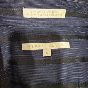 Perry Ellis Blue and black stripe long sleeve button down shirt