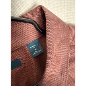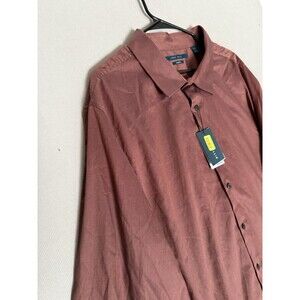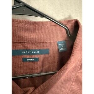 Perry Ellis Button Down Shirt 3X Burgundy Mens Check Cotton Stretch Long Sleeve