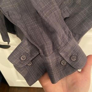 Dark blue plaid button up with fully functional buttons and from pockets. Material is super soft and comfy. No rips, stains, or tears whatsoever. Let me know if you have any questions or concerns, I’d be more than happy to provide more details!