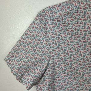 Perry Ellis Button Up Camp Shirt Men's XL Red Fish Blue Fish Print Cotton EUC