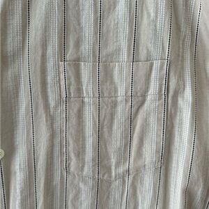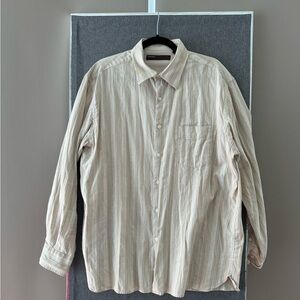 Stripped oversized button up in cream and off-white patterns. Great layering piece to elevate your look.