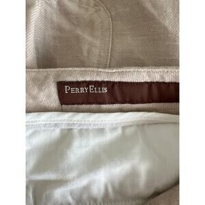 Perry Ellis Cargo Shorts Men's Size 34 Beige Linen Blend Drawstring Flat Front