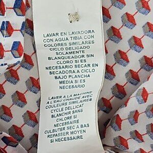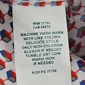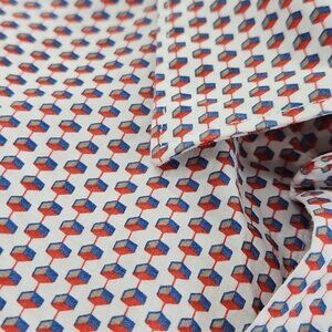The Perry Ellis Cube Shirt in Men's XL features a red and blue geometric pattern, making it a stylish and versatile addition to any wardrobe. This button-down shirt has a button-down collar and long sleeves, perfect for a casual occasion. Made from cotton and easy to care for, this shirt is suitable for all seasons and has a classic yet colorful theme that adds a touch of preppy flair.