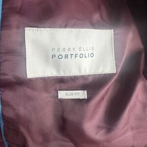 Stylish deep red blazer by Perry Ellis. Ideal for formal events or a refined casual look.