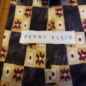 Perry Ellis Designer Black and Yellow Square Flowered Men's Tie Necktie