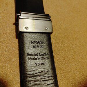 Perry Ellis Designer Bonded Leather Belt 1.5 Textured Metallic Buckle Black Size
