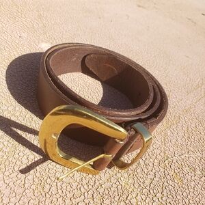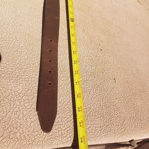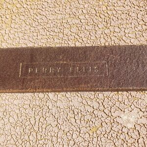 Perry Ellis Geniune Leather belt gold buckle sz Tan Carmel sz 34.5" a thick belt. Condition some wear to leather ease review pictures.