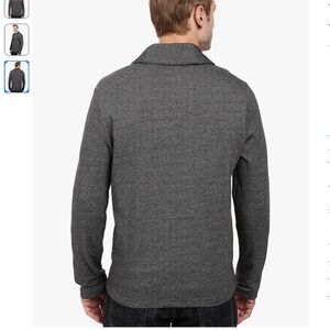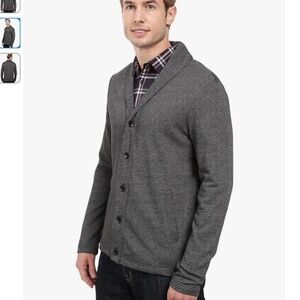Features refined shawl collar, side slip pockets, button down style and subtle Perry Ellis logo