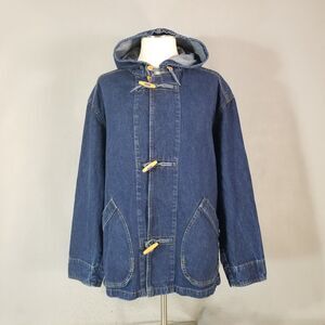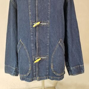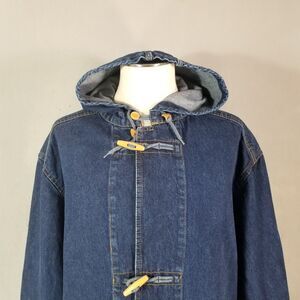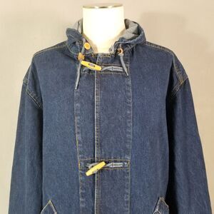 Perry Ellis Jacket Coat Barn Chore Blue Denim Mens Large Retro Cotton Hooded