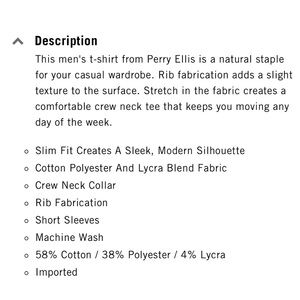 Perry Ellis black ribbed knit crew neck tee in a stretch-fit. Comfortable and versatile. Ideal for casual or business casual wear.